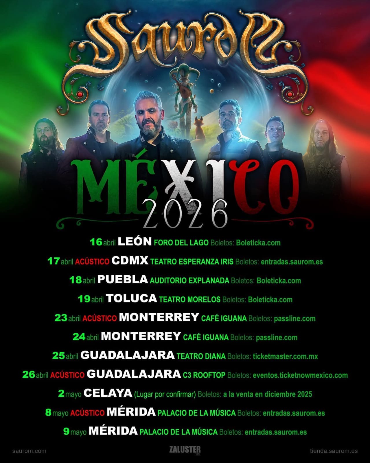 El eco de las flautas y el rugir de las guitarras vuelven a convocar a la juglaría. A tan solo dos semanas de que el primer acorde rompa el silencio, los gaditanos Saurom se declaran listos para desembarcar en México, dando continuidad a una travesía que ha unido corazones a ambos lados del océano. Tras la histórica apertura en 2025 bajo la cúpula de la Arena Ciudad de México, la banda regresa este 2026 para expandir el horizonte de su más reciente y profunda obra conceptual.